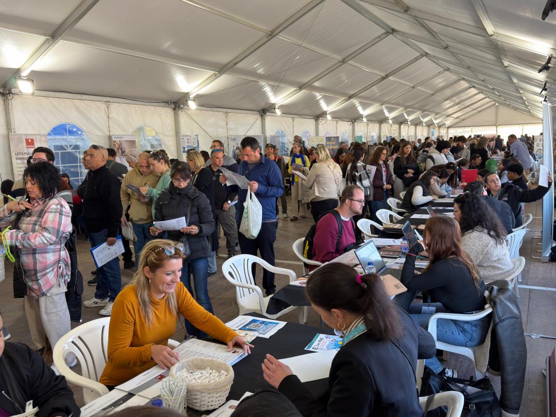 2.100 persones han visitat la nova edició de la Fira de l’Ocupació de Calafell, una xifra que supera abastament l’assolida fa un any i que posa de manifest el creixent atractiu d’una iniciativa que ha aplegat a 52 empreses que necessitaven formalitzar 350 contractacions.