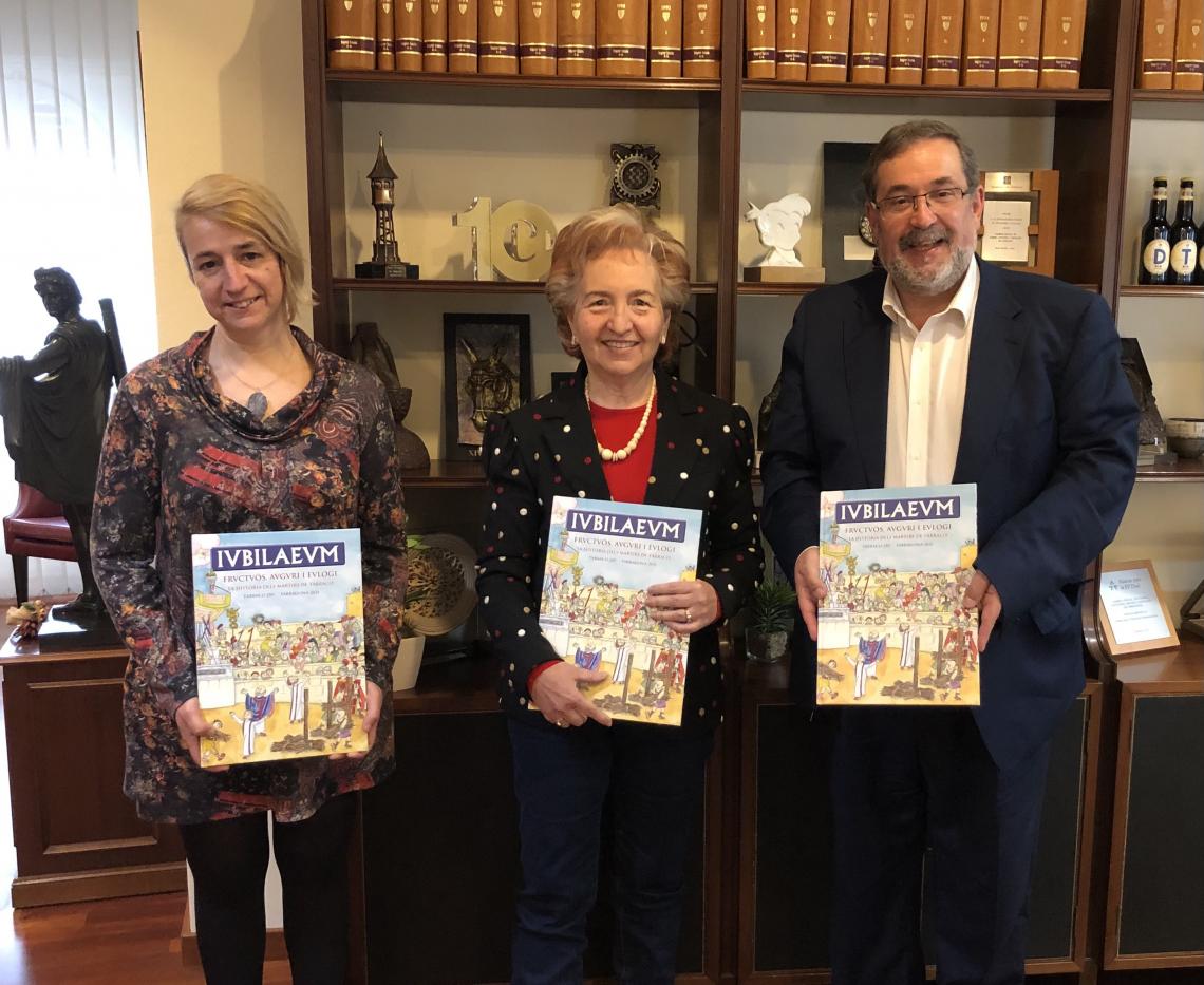 Immaculada Teixell, presidenta de l’Associació Cultural Sant Fructuós i Andreu Muñoz, autor dels continguts escrits de la primera edició ...