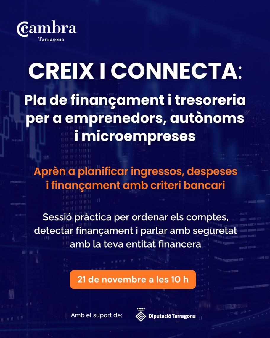 A la Cambra de Tarragona t’ensenyem a preparar un pla de finançament i tresoreria adreçat a emprenedors, autònoms i microempreses.