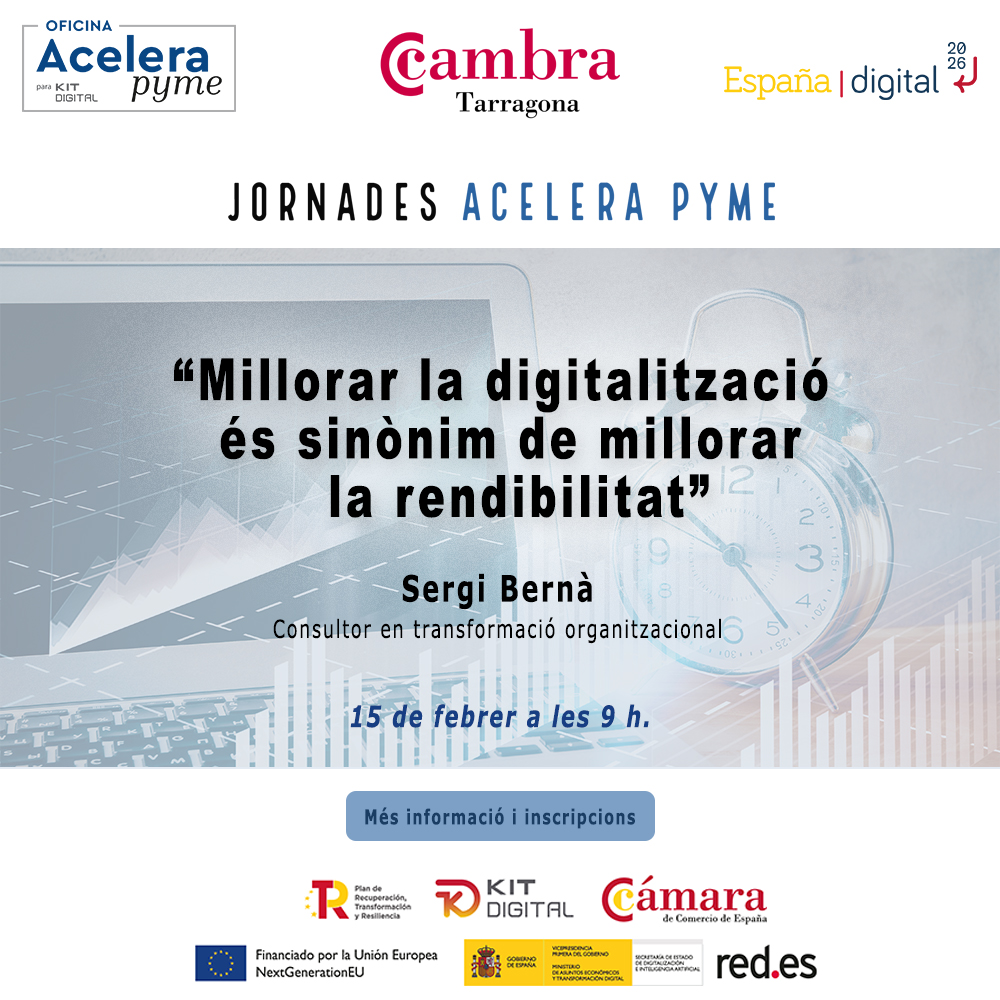 Les jornades Accelera Pime són una iniciativa de la Cambra de Tarragona i formen part del ventall d’accions a favor de la transformació digital de les empreses, que s’impulsen des de l’Oficina Acelera Pyme de la Cambra, la primera de les Comarques de Tarragona.