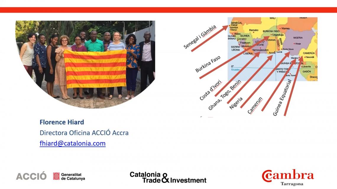 Roberto Barros, director de Comerç Internacional de la Cambra de Tarragona i Florence Hiard, directora d'Acció a Accra, han posat en valor pels exportadors els destins de Ghana, Senegal, Nigèria i Costa d'Ivori, mercats estrella a l'Àfrica de l'Oest, en el marc del webinar organitzat per la Cambra de Tarragona.