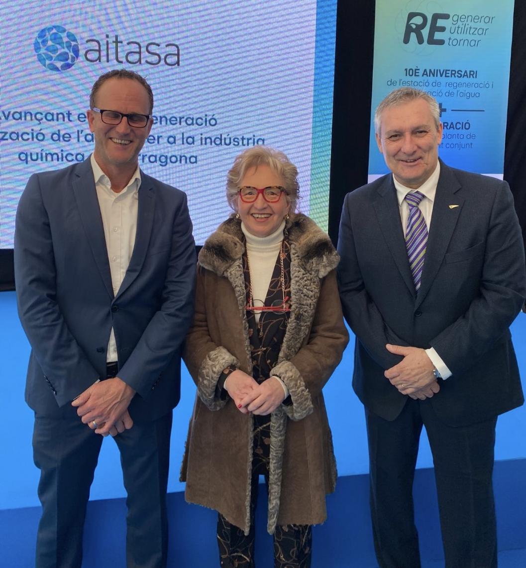 Laura Roigé, presidenta de la Cambra de Tarragona, ha assistit a l’acte d’inauguració de la nova planta d’Aitasa per al tractament conjunt d’aigües residuals procedents de la indústria química. Un esdeveniment empresarial que ha comptat amb la presència de Pere Aragonés, president de la Generalitat de Catalunya.