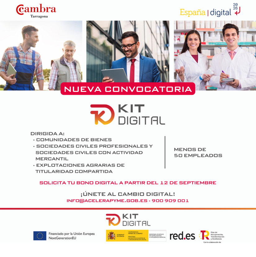 Red.es ha presentat una nova convocatòria d’ajudes del Kit Digital, adreçades en aquesta ocasió a impulsar la digitalització de les comunitats de béns, societats civils amb activitat mercantil, societats civils professionals i explotacions agràries de titularitat compartida, amb la condició de que tinguin menys de 50 treballadors.