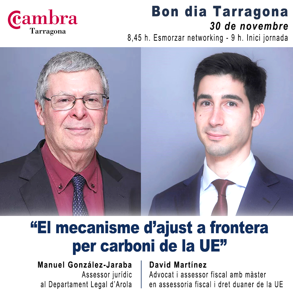 Manuel González-Jaraba, assessor jurídic al Departament Legal d’Arola i David Martínez, advocat i assessor fiscal amb màster en assessoria fiscal i dret duaner de la UE, vindran a la Cambra el 30 de novembre, a les 9 hores del matí, per tal de prendre part a una nova edició del cicle de jornades Bon dia Tarragona, que en aquesta ocasió s’organitza amb Arola.