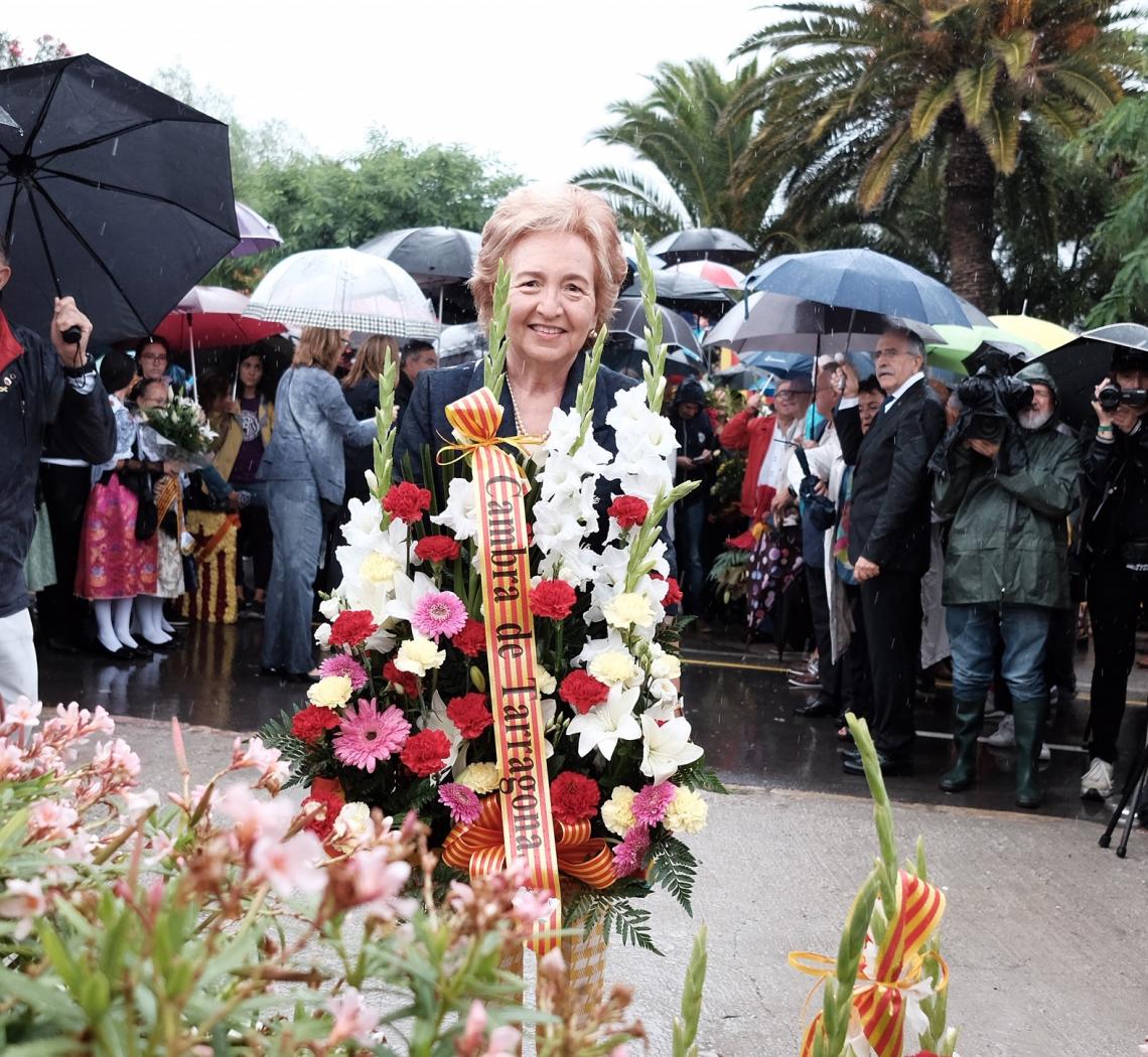 Laura Roigé, presidenta de la Cambra de Tarragona, ha desafiat un matí plujós per prendre part a l’ofrena amb motiu de l’11 de Setembre, ...