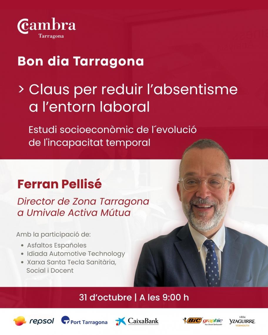 Ferran Pellisé, director de Zona Tarragona a Umivale Activa Mútua, vindrà a la Cambra el proper 31 d’octubre, a les 9 de...