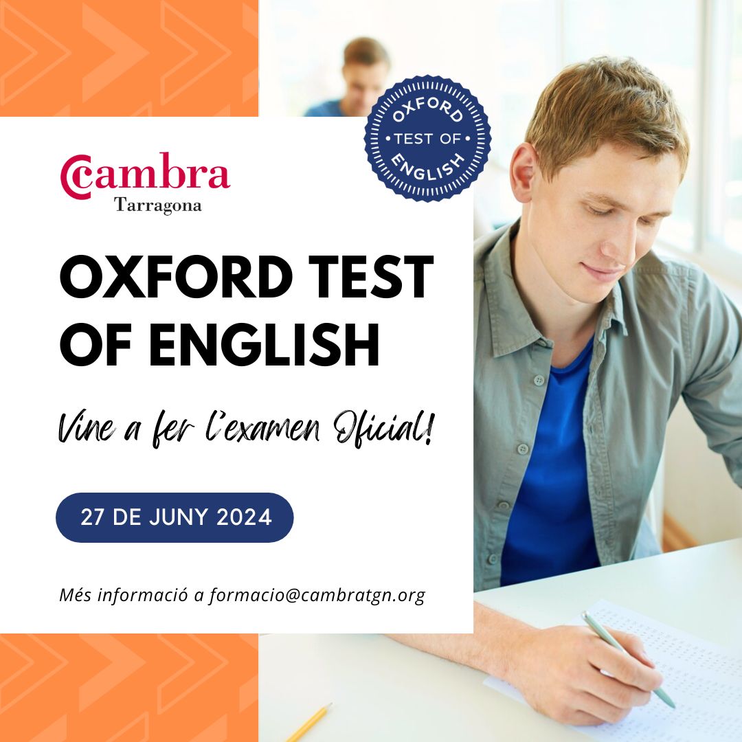El 27 de juny, en horari de 9 a 11 hores, tindrà lloc a la Cambra de Tarragona l’examen oficial Oxford Test of English.