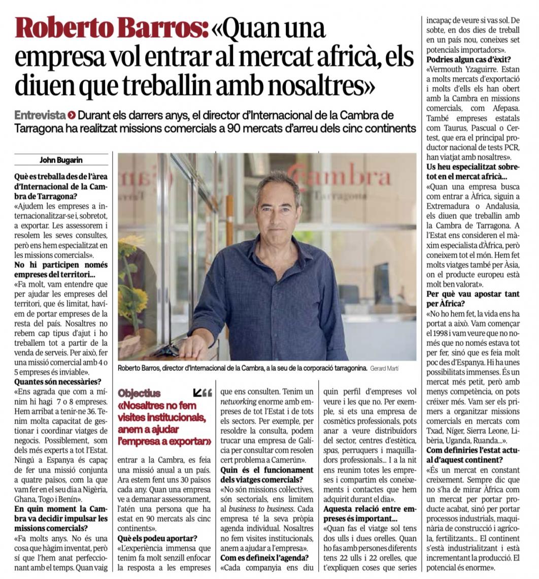 “Quan una empresa vol entrar al mercat africà, li diuen que treballi amb nosaltres”, ho explica Roberto Barros, director d’Internacional ...