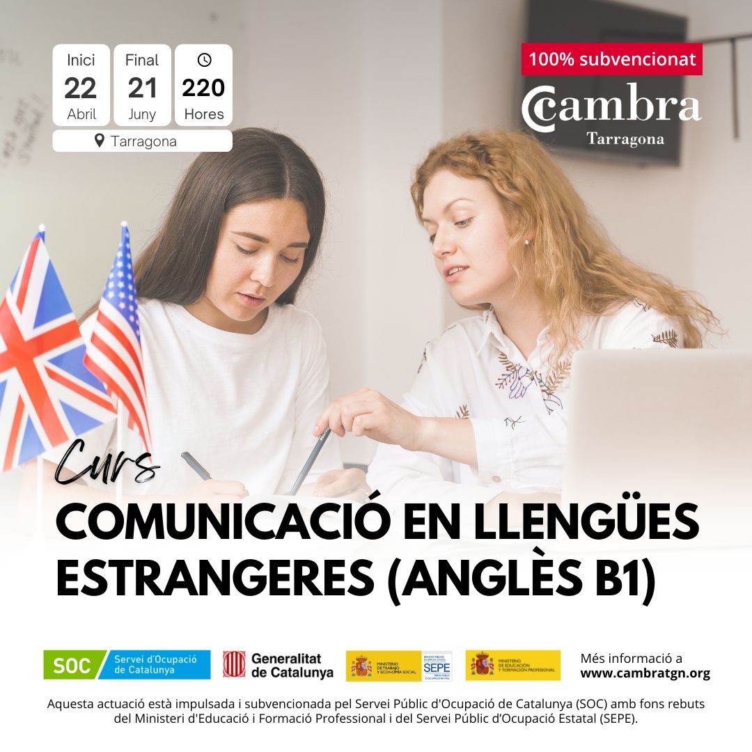 A la Cambra de Tarragona t’oferim un curs de 220 hores lectives per millorar el teu nivell anglès. Aquesta proposta formativa està subven...