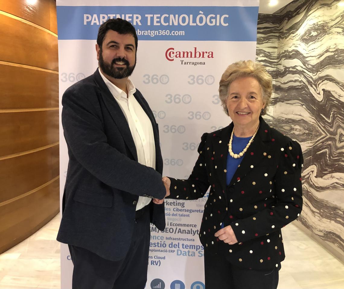Laura Roigé, presidenta de la Cambra de Tarragona i Josep Maria Pallarès, director de l’Institut Pere Martell, han signat un ambiciós aco...